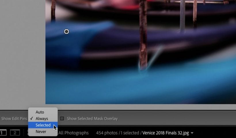 When you’re using Lightroom’s Adjustment Brush (or the Graduated tool or Radial Filter), you have a choice of how Lightroom displays the Edit Pins you create while you’re editing. Once you have one of those…